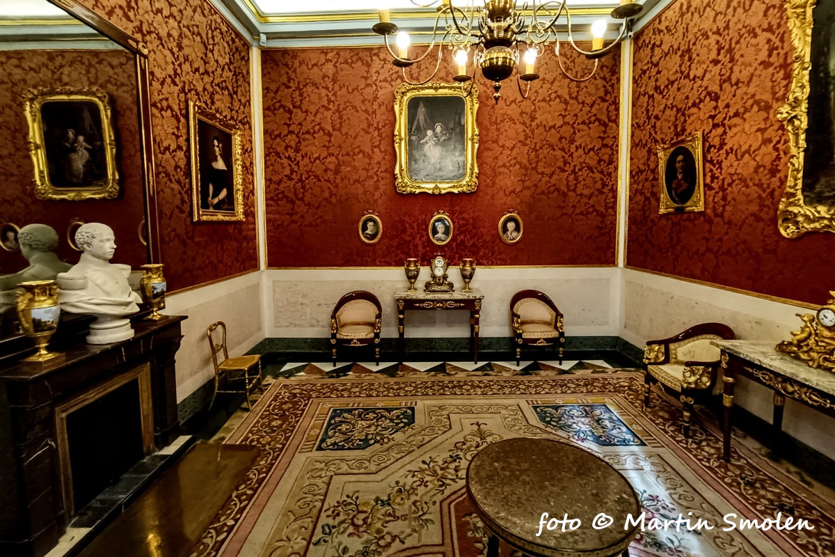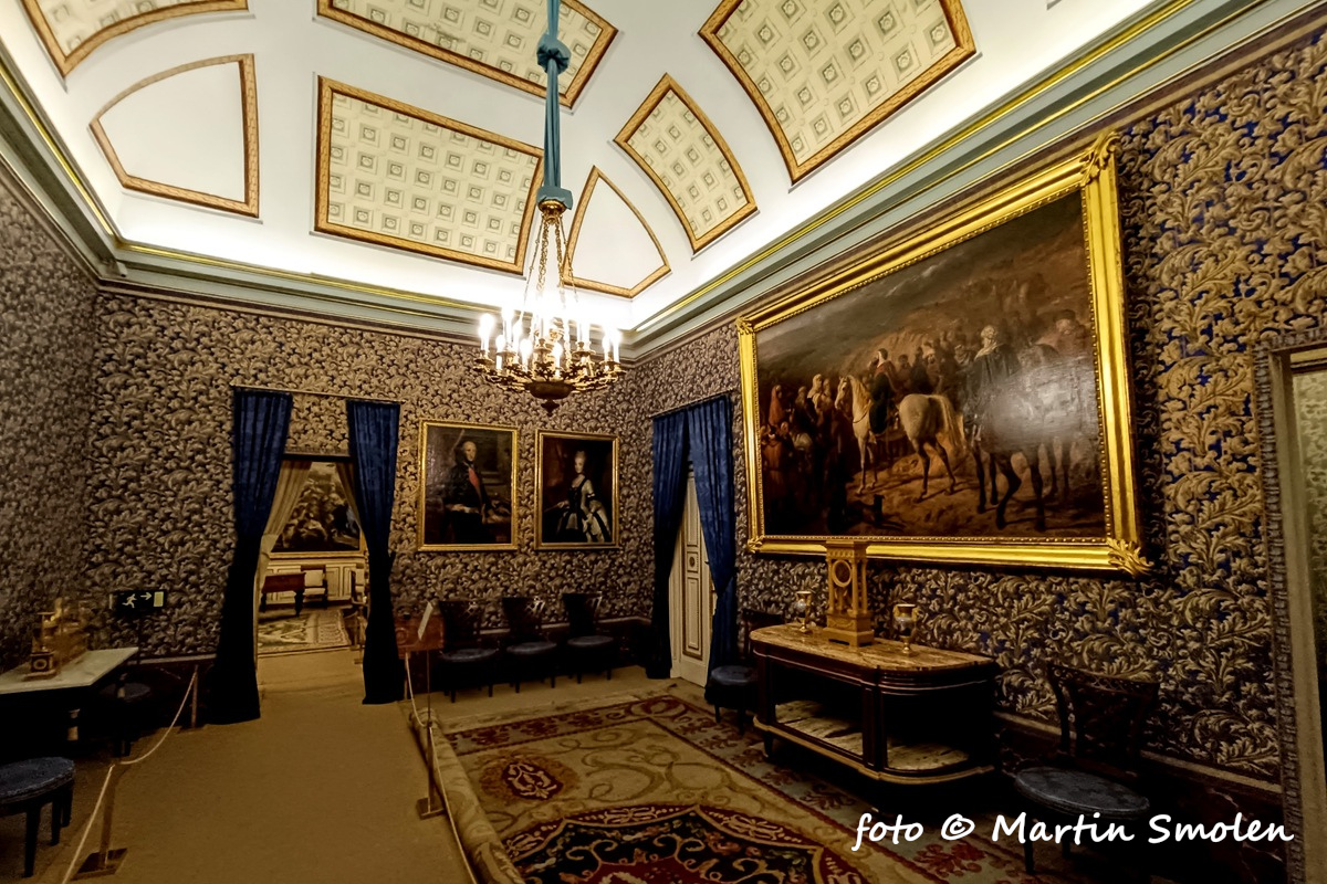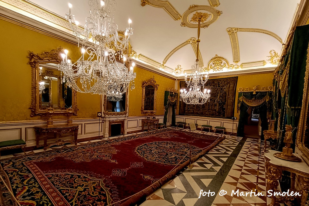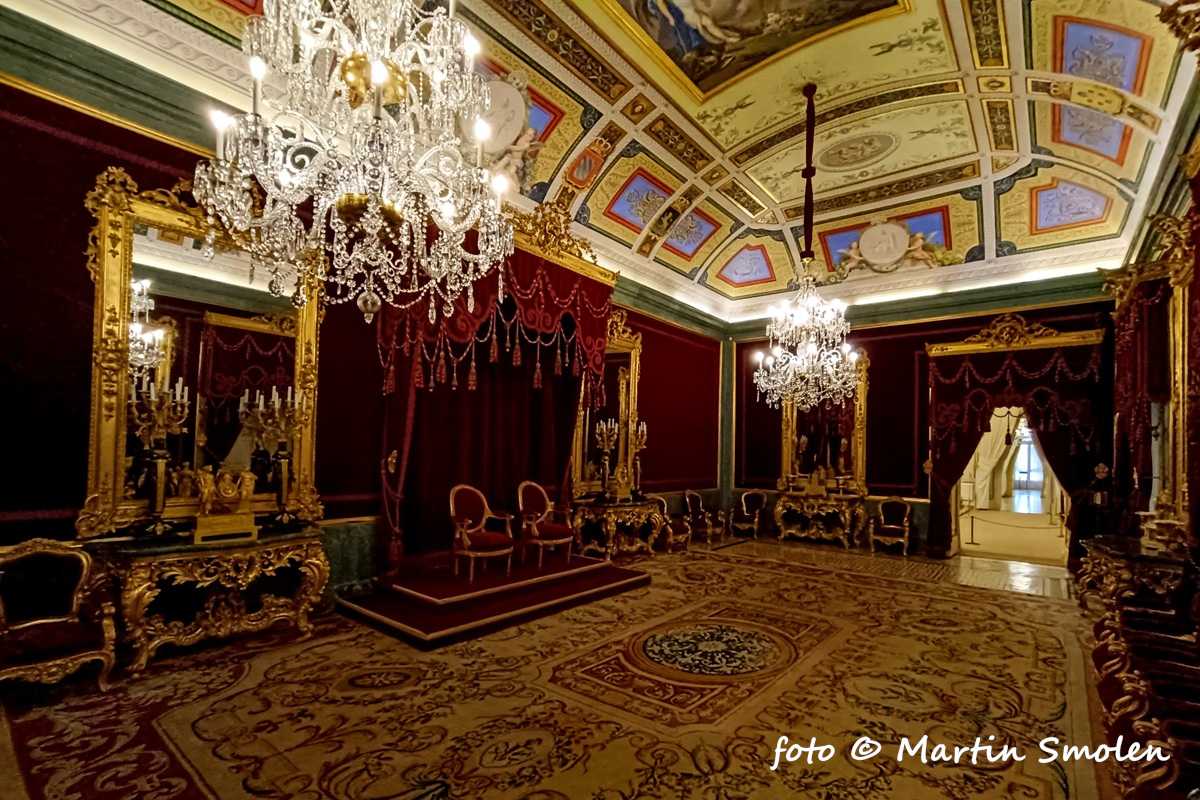 Jednou z najpôsobivejších miestností paláca je trónna sála. Zachovala sa v autentickej podobe z 18. storočia so zamatovými tapetami, zlatými detailmi a portrétmi panovníkov. Nejde o repliku, je to skutočná miestnosť, kde sa prijímali diplomati a robili štátne rozhodnutia.