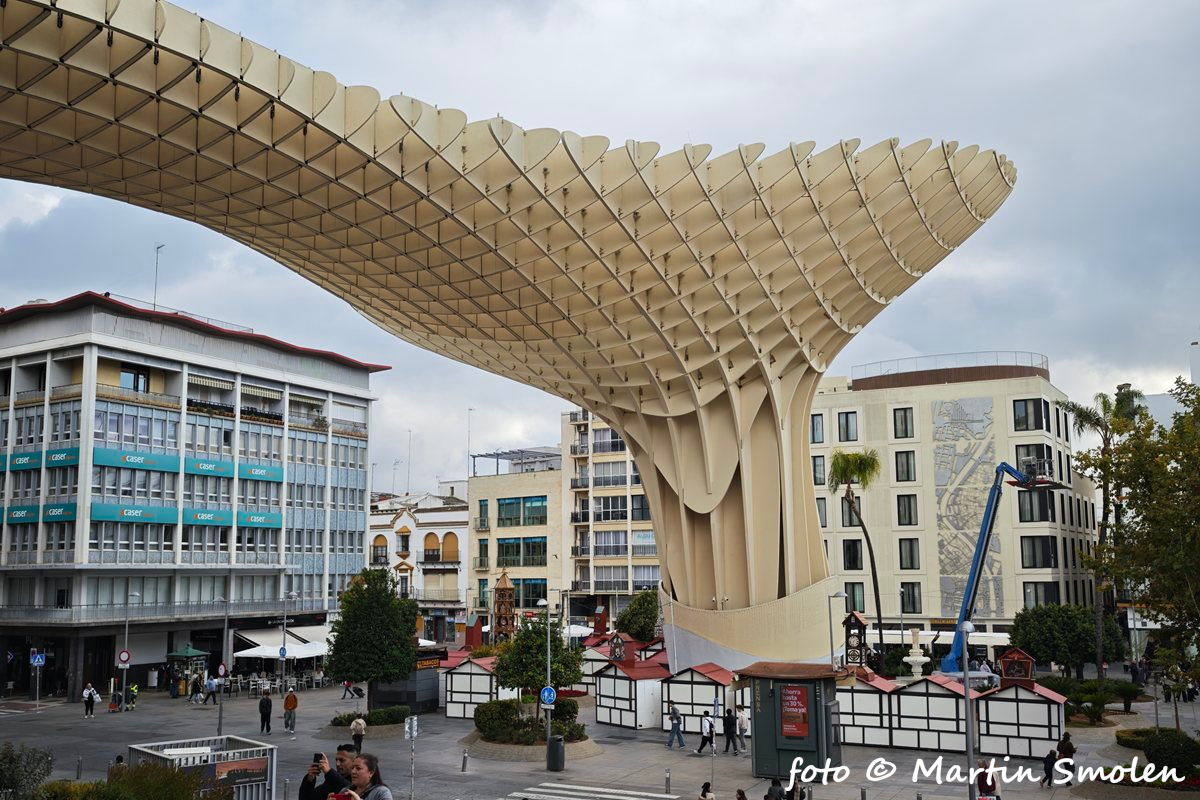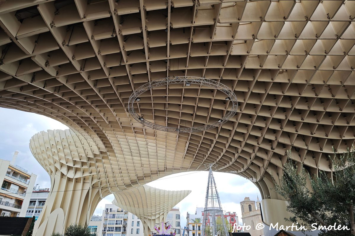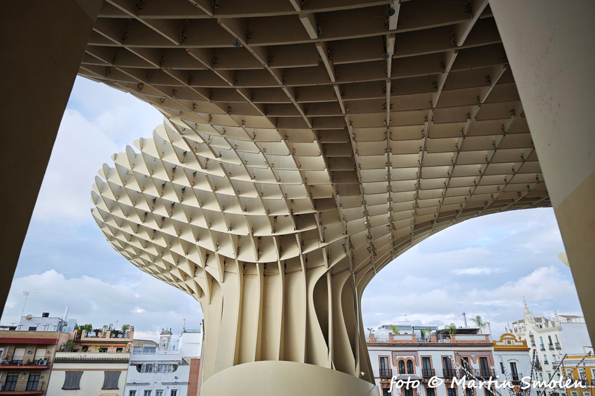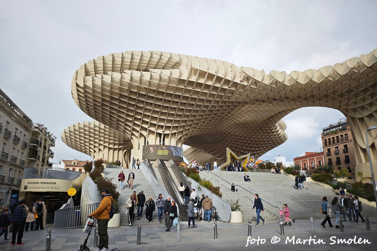 Drevo, ktoré sa dnes vinie nad námestím ako sieť obrovských platforiem, pochádza z Fínska. Ide o špeciálne vrstvené materiály odolné voči teplotným výkyvom aj vlhkosti. Každý jeden diel je unikát. Diely dopravili do Sevilly na tisíckach kamiónov a poskladali ako gigantickú trojrozmernú skladačku.