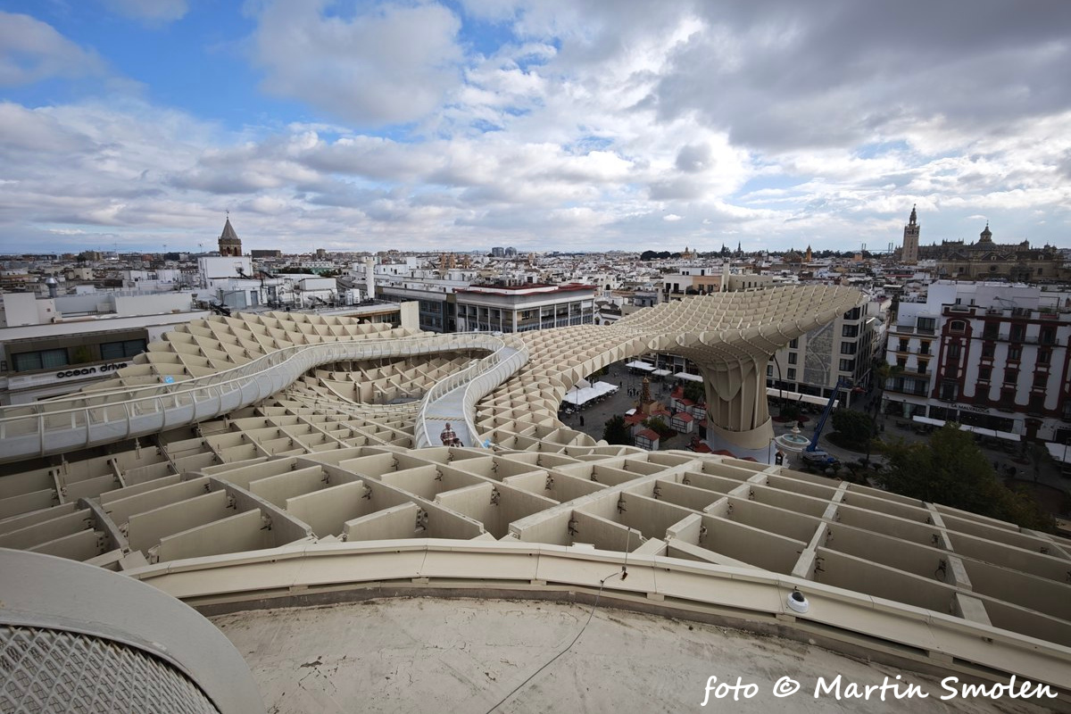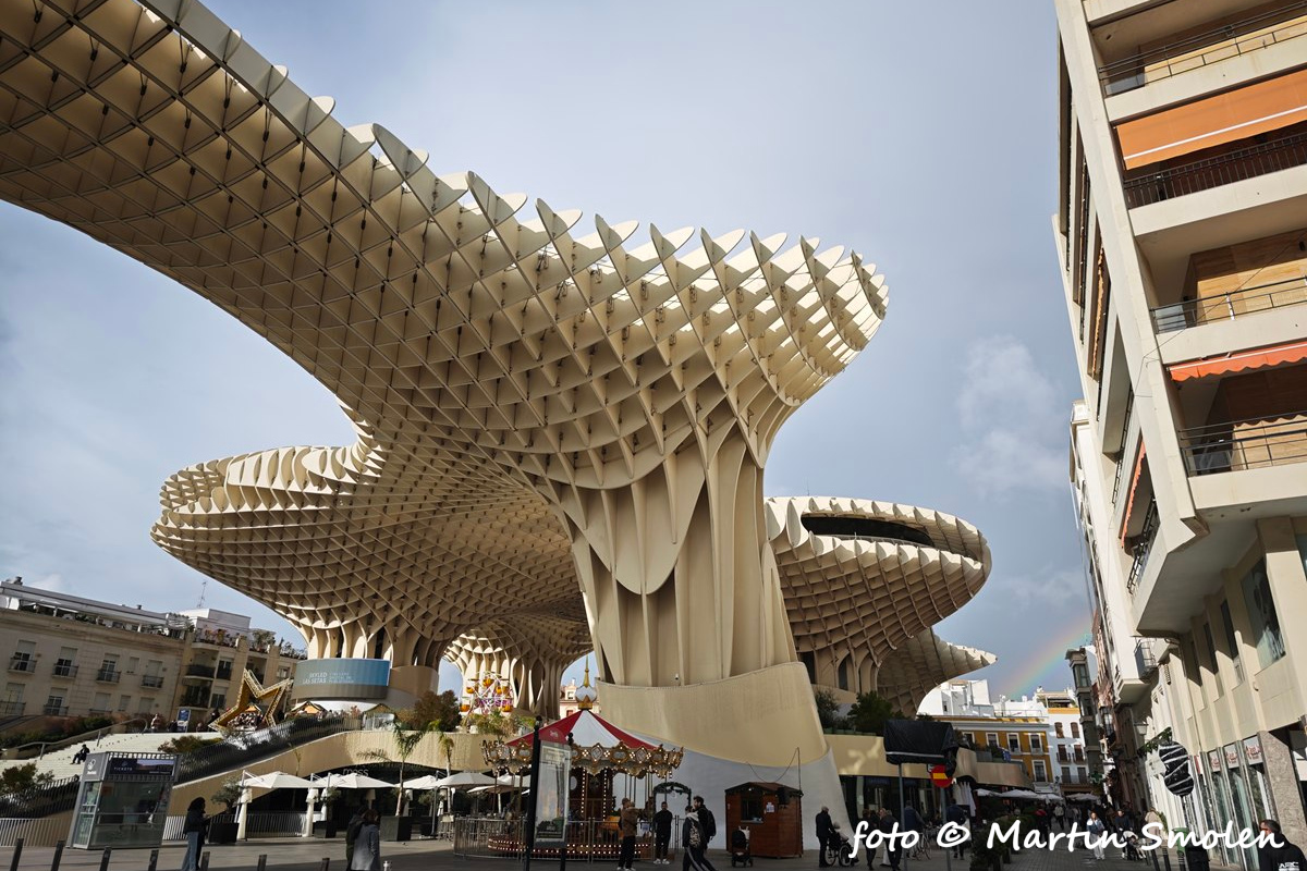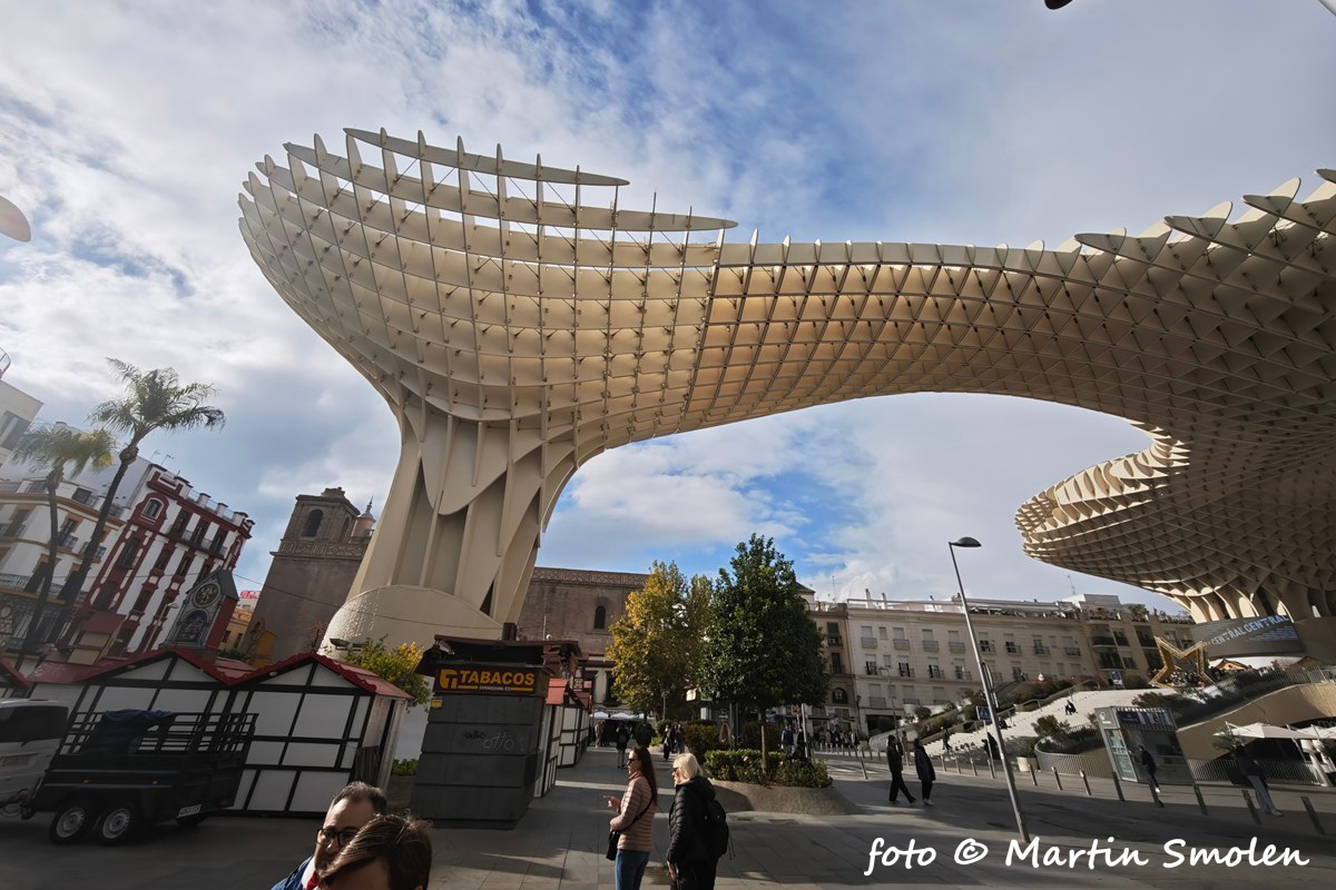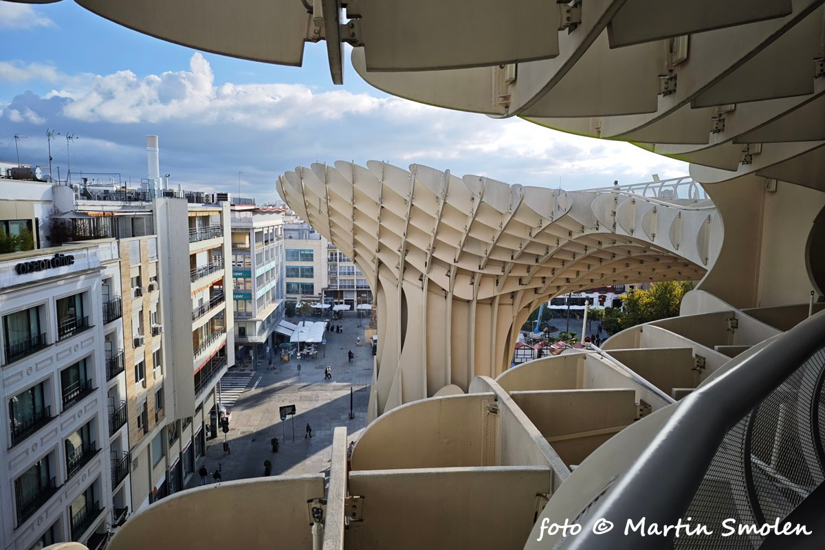 Drevo, ktoré sa dnes vinie nad námestím ako sieť obrovských platforiem, pochádza z Fínska. Ide o špeciálne vrstvené materiály odolné voči teplotným výkyvom aj vlhkosti. Každý jeden diel je unikát. Diely dopravili do Sevilly na tisíckach kamiónov a poskladali ako gigantickú trojrozmernú skladačku.