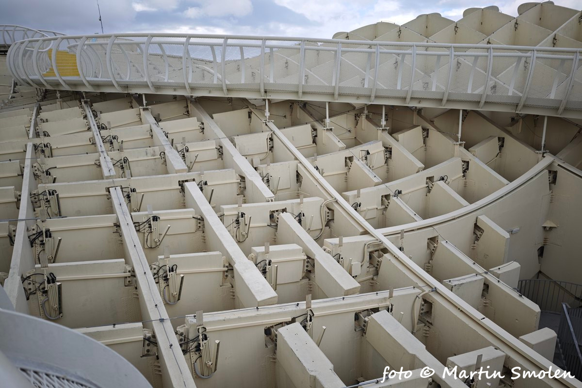 Celý povrch dreva je pokrytý polyuretánovou vrstvou, ktorá ho chráni pred intenzívnym španielskym slnkom, dažďom aj teplotnými výkyvmi. Aj vďaka tomu je konštrukcia po viac než desiatich rokoch stále v skvelej kondícii. Tvar húb – alebo „parasolov“ – má nielen estetickú funkciu, ale aj praktickú: poskytuje tieň, ktorý bol pre túto časť Sevilly viac než potrebný.